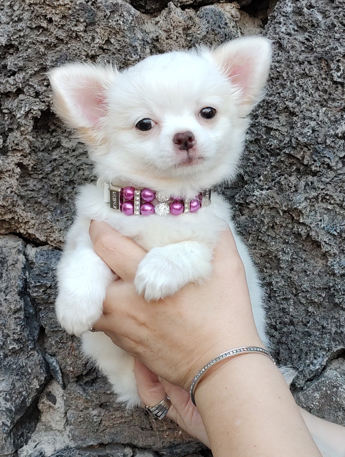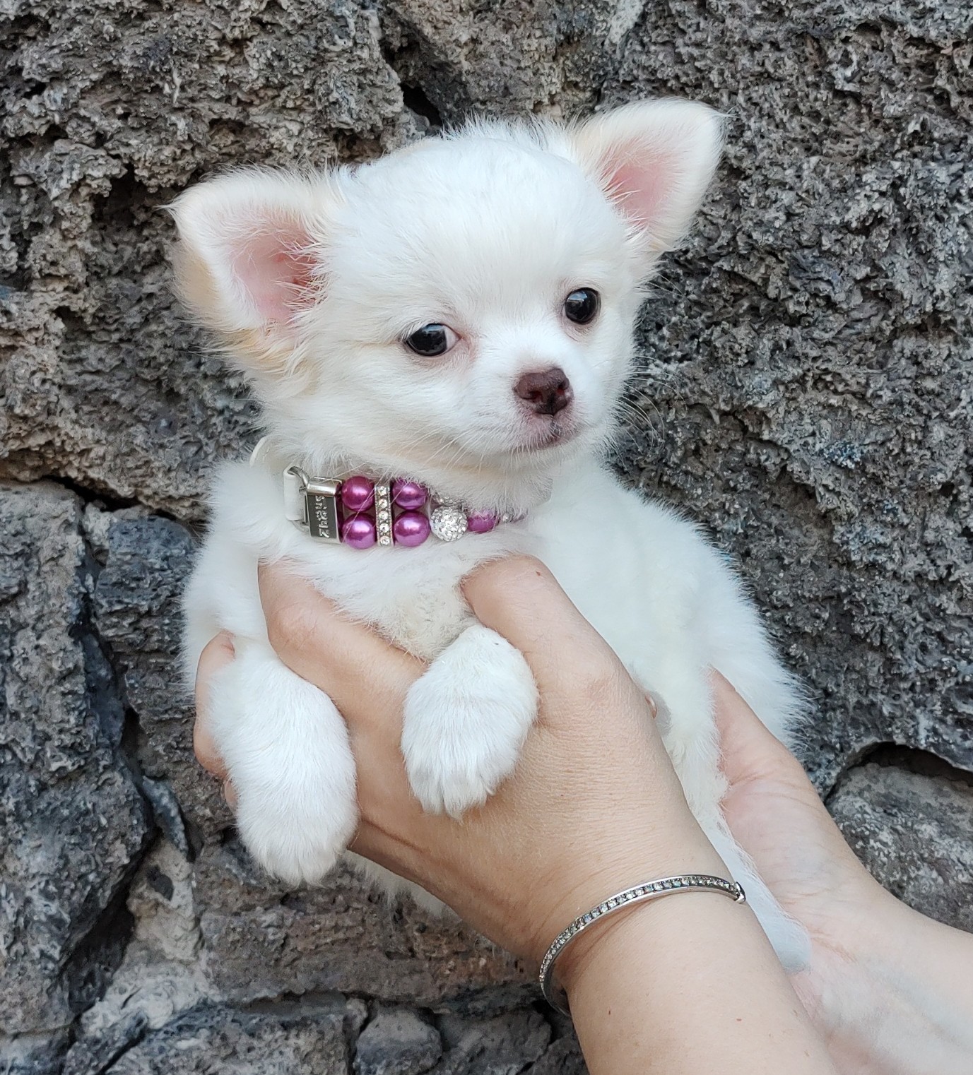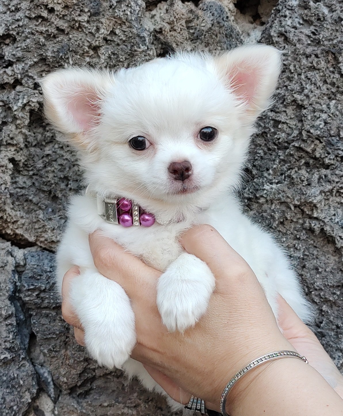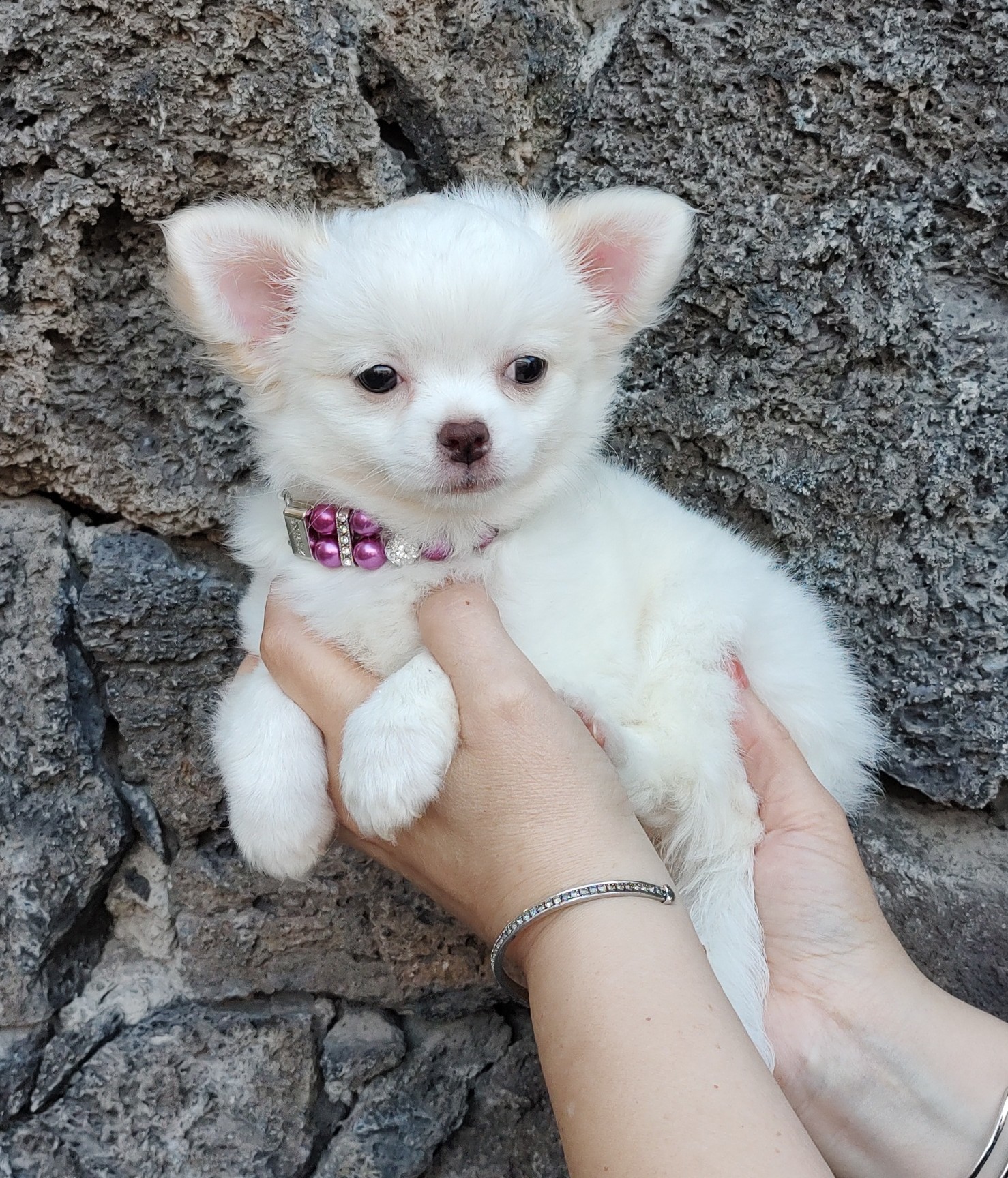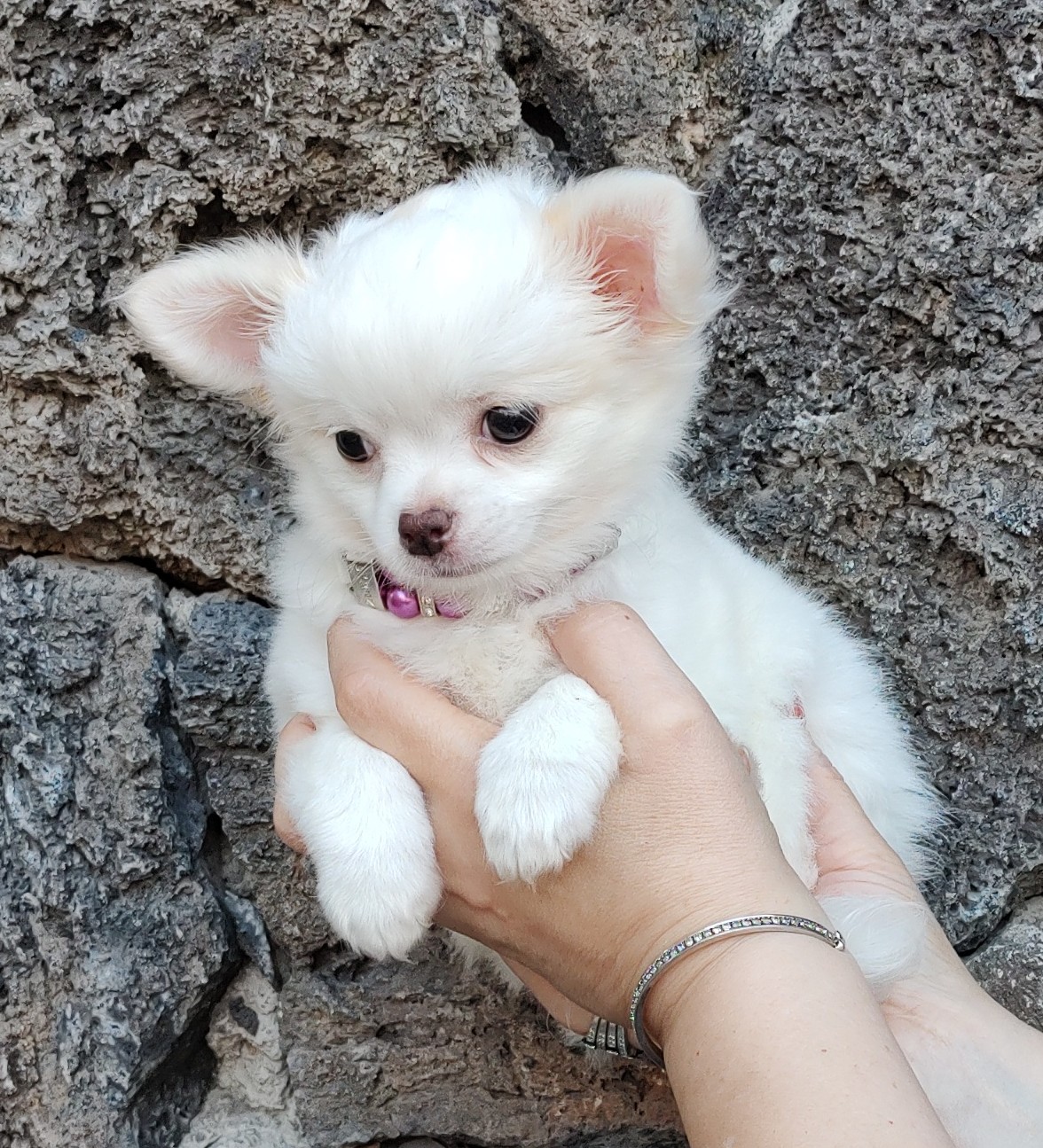 Es valiente, leal y cariñosa,  es pelo largo color hueso, es una belleza   !!